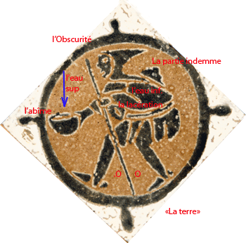 2. Et-la-terre existait puissance-contingente-d’être dans-une-puissance-d’être: et l’obscurité (force compressive et durcissante) -était sur-la-face de-l’abìme (puissance universelle et contingente d'être ); et-le-souffle de-lui-les-Dieux (force expansive et dilatante) était-générativement-mouvant sur-la-face des-eaux (passivité universelle).
