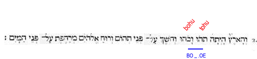 La terre en tant que puissance d'être (tohu bohu) peut être figurée par un champ carré potentiel, "haché" sous l'effet d'un mouvement de vibration de type reptiforme, ce qui a permit d'affirmer par certains commentateurs qu'elle était inanimée et vide (Vulgate).