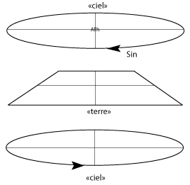 La condition existentielle d'apparition de cette valeur, "lumière" conceptuelle de la création, exige un processus de reflet, de renversement, d'opposition dans l'espace, où se developpera un second mouvement relatif nommé "ciel" comme le premier.