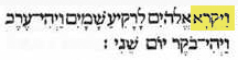 Et-il-assigna-nom, Lui-l'Être-des-étres à-l’espace-éthéré, Cieux (les eaux éclatantes, élevées) : et- fut-occident, et-l’ut-orient (libération et itération). Jour, second (seconde manifestation phénomnique). |