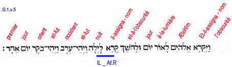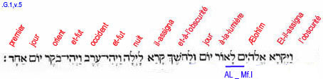 5. Et-il-assigna-nom, Lui-les- Dieux, à-la-lumière, Jour (manifestation universelle) ;