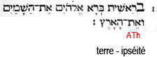 I. PREMIEREMENT-EN-PRINCIPE, il-créa, Ælohîm (il détermina en existence potenlielle, Lui -les-Dieux, l'Être-des-êtres), l’ipséité-des-cieux et-l’ipséité-de-la-terre. V.1 |