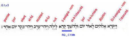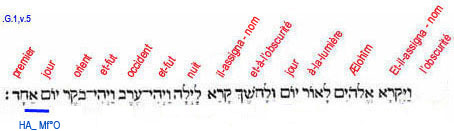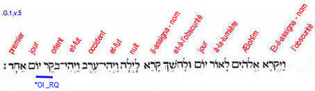 5. Et-il-assigna-nom, Lui-les- Dieux, à-la-lumière, Jour (manifestation universelle) ;