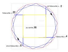 et-à-l’obscurité: (Z) (D) OLHShC final: tout mouvement démonstratif, manifestant, rayonnant, briller, jeter de l'éclat, ce qui paraît au dehors, réfléchit la lumière , un objet / un (mouvement) de déséquilibre / OL, un mouvement extensif, traînant, faisant un effort pour se montrer, c'est le mouvement inné de la végétation, issu d'un mouvement violent et désordonné, de cette ardeur interne cherchant à se distendre: feu central principal appétant et cupide, tout ce qui est aride / d'un ensevelissement, d'un retour en soi-même.