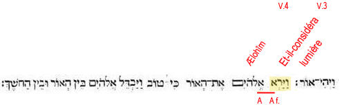 4. Et-il-considéra,Lui-les-Dieux, celle-lumière comme bonne ; et-il-fìt-une-solution