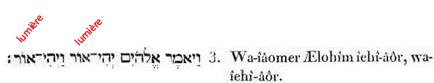 Et-il-dit( déclarant sa volonté) , Lui-l’Ètre-des-êtres : sera- faite-lumière; et-(sera)-fut-faite-lumière(élémentisation intelligible).