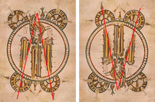 302, LB, le cœur, le centre de quoi que ce soit, d'où rayonne la vie, et toutes les facultés qui en dépendent. 1112, AAAB, la tri-unité / la cause productive, la volonté éfficiente, et le mouvement déterminant, la force générative. 1414, ADAD, (le lieu) d'où émane une double chose, unité relative.