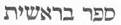 Le Sepher Beræshith ou Livre du Principe et son ouverture